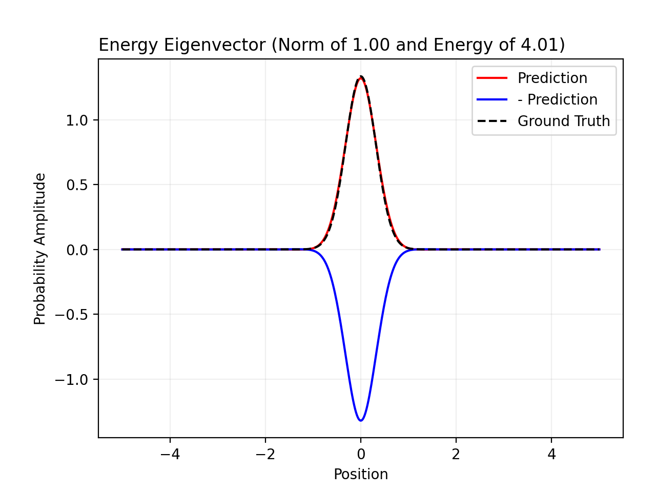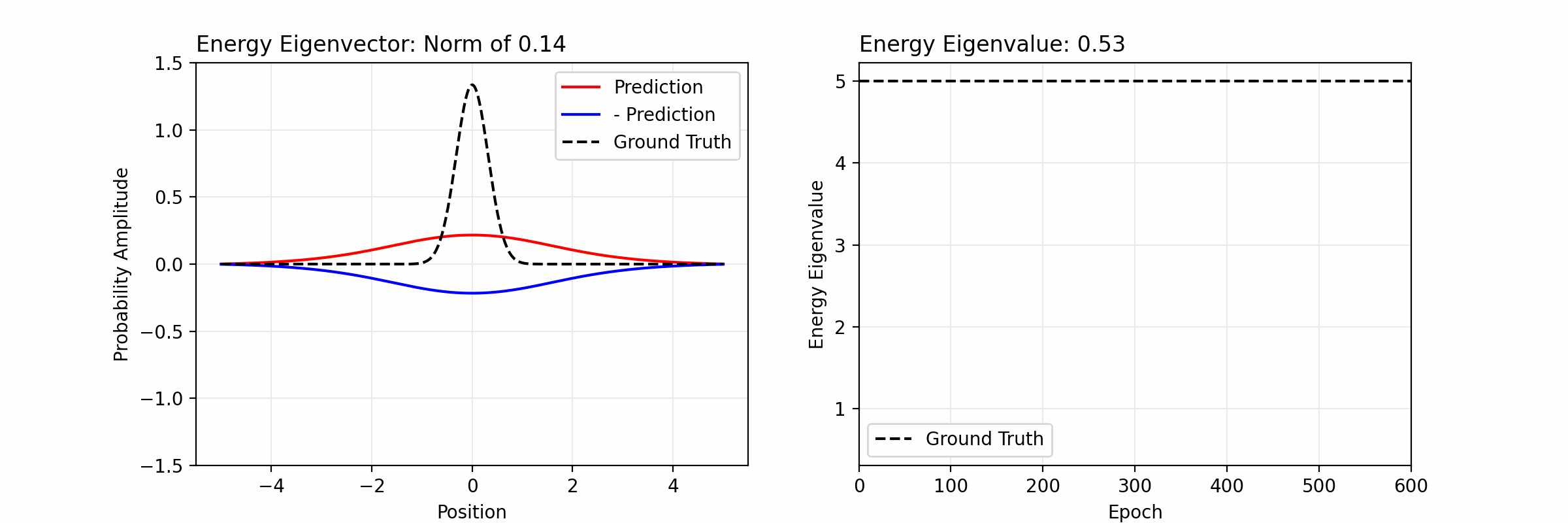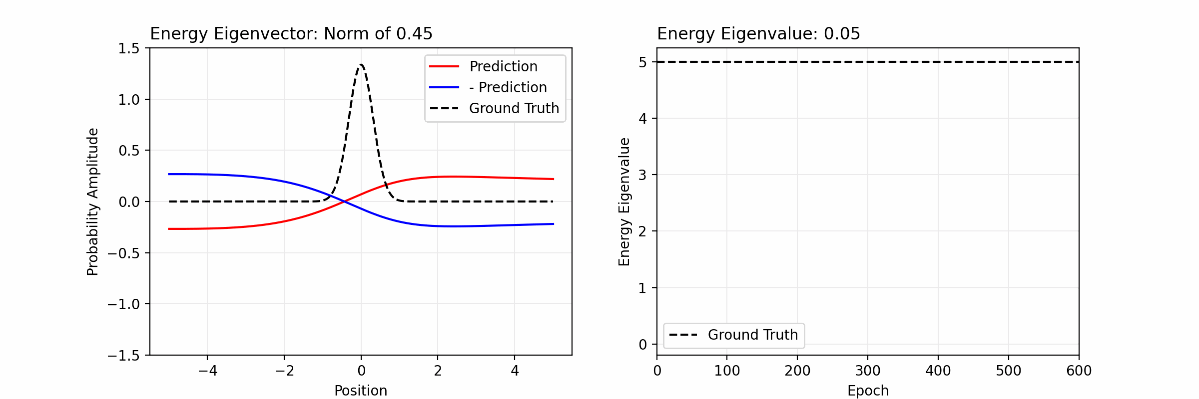 Moreover, such a loss discourages trivial solutions (wavefunctions of 0) since they result in non-zero loss, \(\left(\frac{1}{\Delta x}\right)^{2}\), while non-trivial solutions result in zero loss.